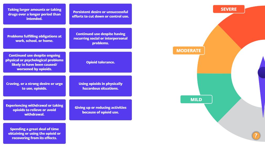 The eLearning module on medications for opioid use disorder features interactive elements developed in Storyline 360, which are seamlessly integrated into a Rise 360 course.